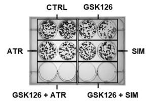 La combinaison du GSK126 et d’une statine (ATR pour atorvastatine) élimine très efficacement les cellules tumorales du foie (colorées en noir).